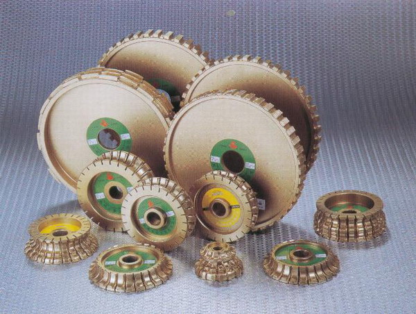 燒結輪:主要用于石材的花線成型及磨花邊,具有磨削速度快,壽命長,成本低等特點,是理想的花崗石加工工具。