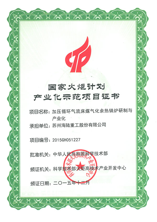 祝賀我公司加壓氣流床煤氣化余熱鍋爐研制與產業化項目獲國家火炬計劃扶持